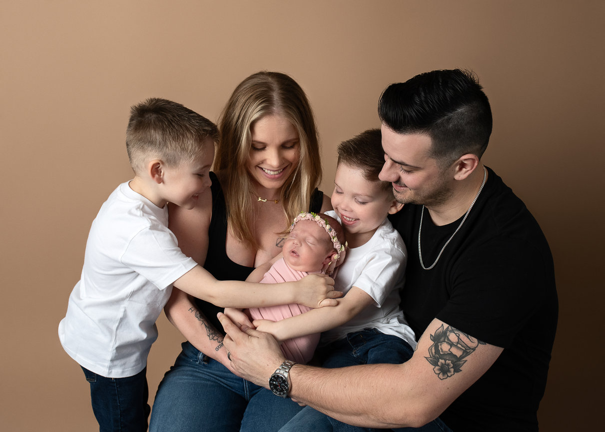 Family and sibling photos are always encouraged and can be incorporated into any newborn photography session in my Lake in the hills, studio.