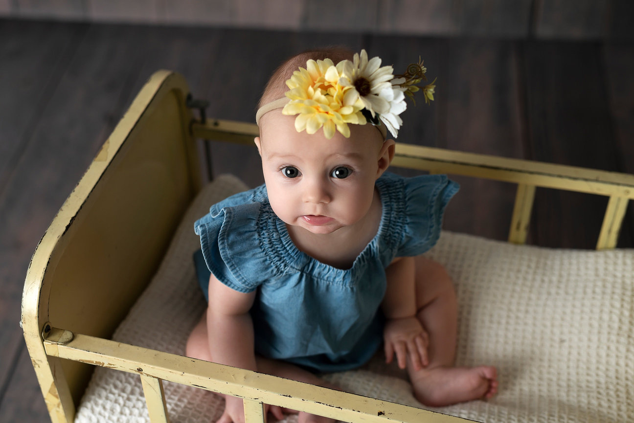 Milestone sessions are held in my studio, especially for younger babies who aren’t sitting up yet. The studio provides a safe, comfortable environment with the perfect lighting and setup to capture your baby’s current stage—whether they’re lifting their head, rolling over, or just starting to push up.